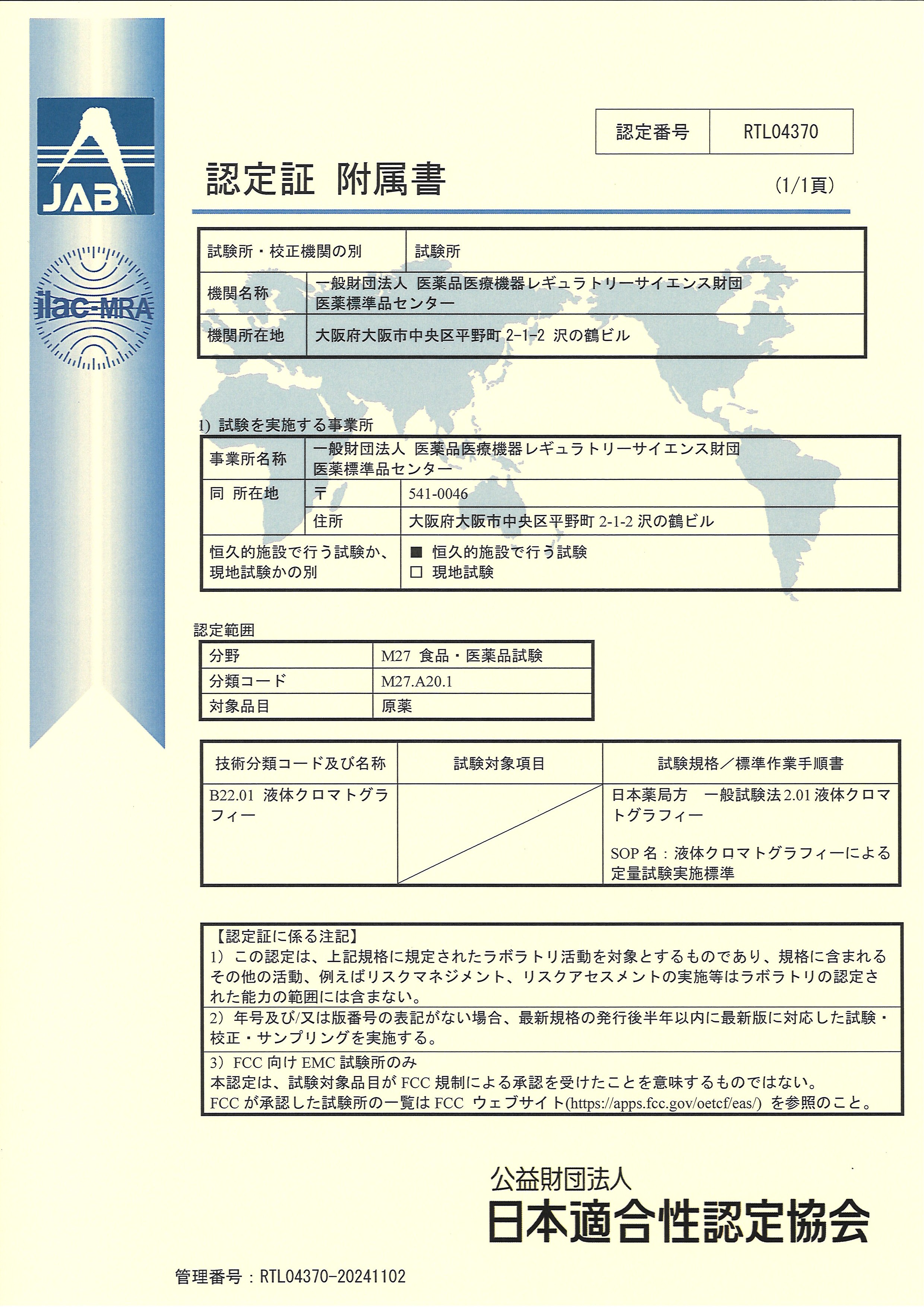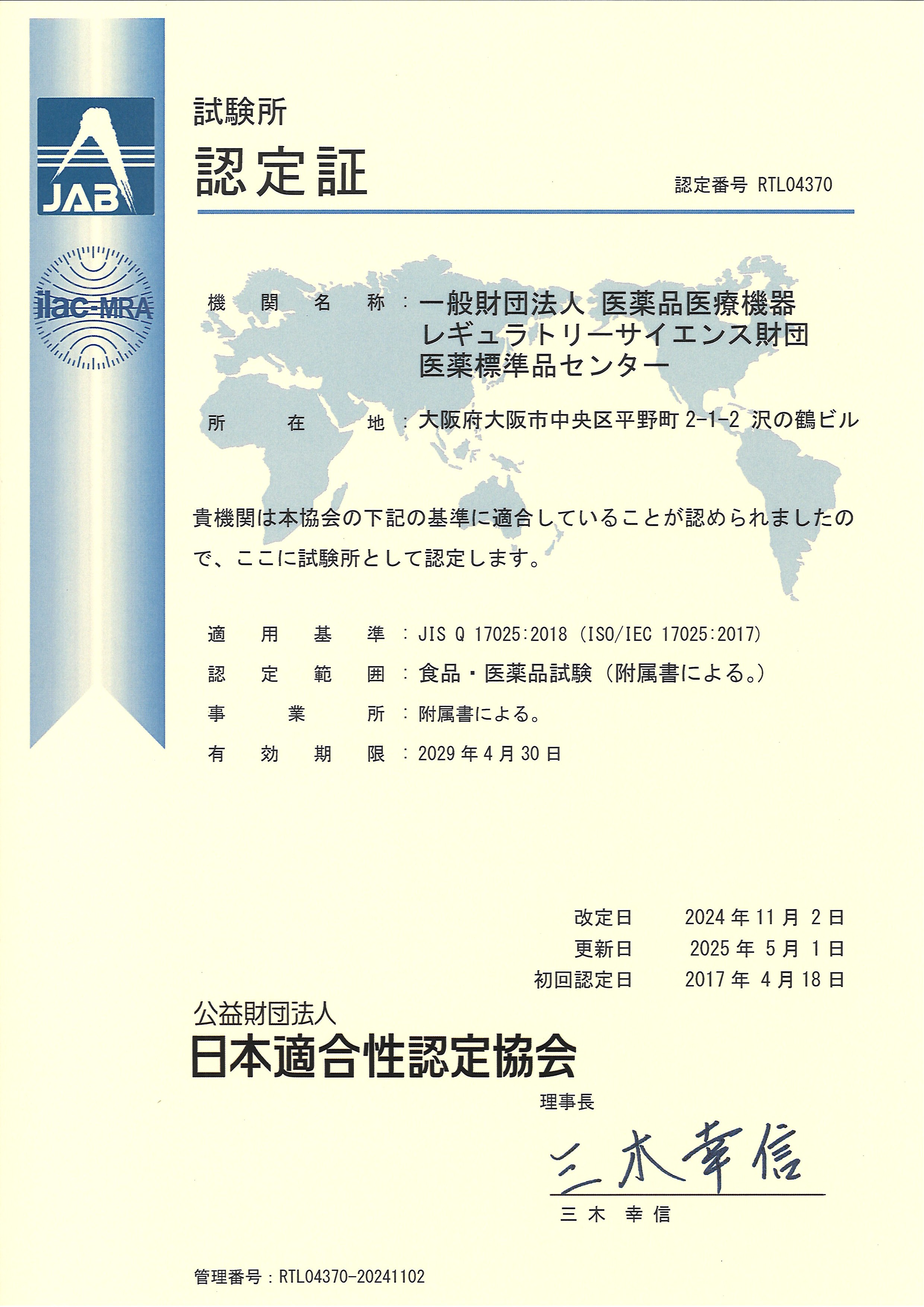 To ensure the reliability of its test results, The Pharmaceutical Reference Standards Center of PMRJ has obtained ISO/IEC 17025 laboratory accreditation, which serves as proof of the technical ability to carry out quality testing properly. In addition, we assures the reliability of quality test results by having multiple organizations perform quality testing and then comparing the test results among the organizations.